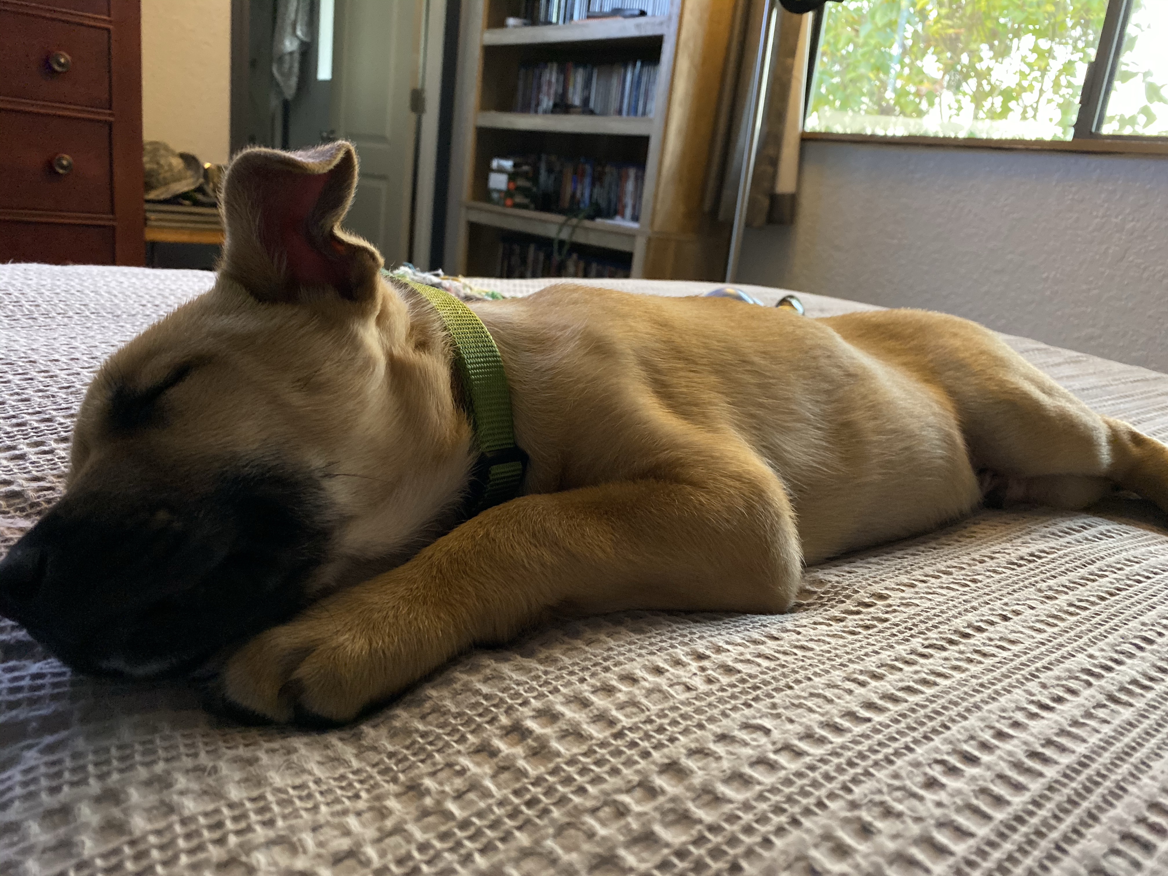 Yep, Nov 2, 2019, this is the day my life changed forever. This is the day I got to meet my forever mom and dad, and they named me Boone. I liked them immediately, but man I was really nervous when we got into the thing they called a car. My mom was holding me, telling me everything was OK, my little body didn’t understand. I ended up peeing all over her lap and legs. Then I couldn’t stop drilling and, I ended up throwing up everywhere. I felt sorry for mom and, dad looked like he was going to throw up next. They got to this big building and took me in it and got stuff to clean me and mom up.